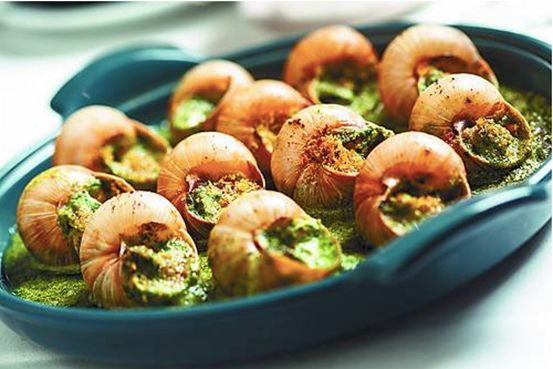 法式焗蜗牛,与鹅肝酱松露并列为法国的三大国宝级菜式。虽然蜗牛作为食品食用并不起源于法国,但经过热爱饕餮的法兰西厨师之手,让柔软肥嫩蜗牛在烹饪界大放异彩。